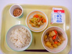 今日の給食には、個別級のみんなが育てた「にこにこ大根」を使った「豚肉と大根の煮物」が提供されました。心を込めて作った大根はやわらかく、よく味が染み込んでいて、とってもおいしかったです!