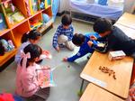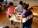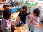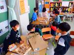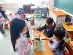 1年生がどんぐりや落ち葉など、公園で集めてきたものを使ってさまざまなお店を作り、なかよしまつりを楽しんでいました。前半と後半に分け、お店番をしたりお客さんとして楽しんだりしました。途中、6年生がお客さんとして遊びに来てくれる場面もありました。大きな声でお客さんを呼び込んだり、ルールをしっかりと説明したりと、張り切って活動する1年生の姿が印象的でした。