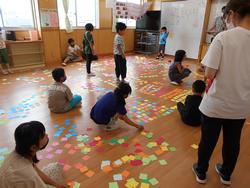 計8個のワールドを2つのチームに分けて運動しています。どの子も「あのワールドが楽しかった!」「難しかったからもう少し挑戦してみたいな。」と意欲をもって取り組んでいます。