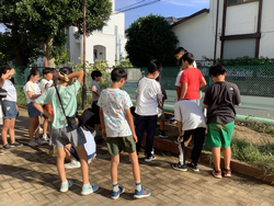 社会の時間には、国会議事堂についてクイズを作ってクイズ大会をしました。算数の授業では、比例の関係を使って、枚数を数えずに200枚の紙を用意するチャレンジをしました。防災教室では、消防署の方が来校し、心肺蘇生法を教えてくださりました。総合の時間には、学校で飼育しているかめきちのために池を掘っています。