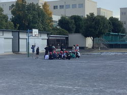 13日には全校で学校の20周年を祝う航空写真を撮りました。学校のマスコットキャラクター「ふじまる」の形に沿って並び、撮影用の飛行機を見上げる子どもたちはわくわくした表情をしていて、とても微笑ましかったです。撮影が終わると、飛び立っていく飛行機に向かって手を振っていました。
