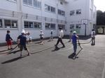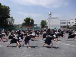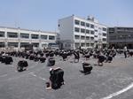 5・6年生が3時間目に校庭でソーラン節の練習をしました。