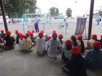 1年生は、警察の方から、安全に歩くための注意点のお話を聞いた後、交通安全教室の方から車が近づいた時に気を付けることを、実際に車の運転を見ながら、説明していただきました。