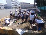 R5.6.16 1年生図工 砂場で造形遊び & 4年生図工 のこぎり & 第1回授業研究会