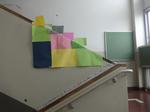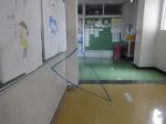6年生が図工「ここから見ると」で、校舎内のあちこちに作品を作っています。