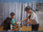 階段や流しの段差を使って「クジラ」 「カメ」、 「しずく」
