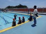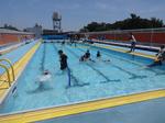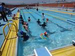 コースロープで「水慣れ」グループ、「もぐる・うかぶ」グループ、「泳ぐ」グループ、に分け、自分のめあての活動を楽しんでいました。
