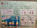 給食室の前に、栄養教諭が作成した、水分補給についての掲示物が貼られています。
