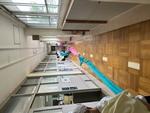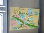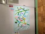 理科室の中や廊下で布を広げて、いろいろなアイデアを出し合って、協力して活動していました。