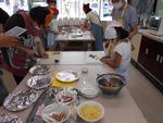 野菜を慎重に切ったり、ギョウザの皮に好きな具材を選んで並べたり、グループで楽しく活動しました。