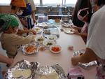 5・6・7組が、花壇で収穫した野菜で野菜パーティーを行いました。