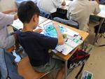 4年生が図工「まぼろしの花」で、絵の具を使って、花の絵を描いています。