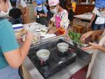 各自持参したほうれん草や小松菜を洗ってゆで、一口大に包丁で慎重に切っていました。