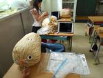 紙袋をくしゅくしゅもんでやわらかくし、中に新聞紙を詰めて、好きなものを作ります。
