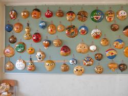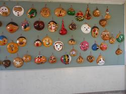かんぴょうの材料の「ゆうがお」の実の形を生かした、個性豊かで、楽しい作品が並んでいます。