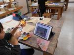 タブレットの写真を見ながら、動物の色や模様を工夫していました。