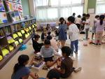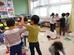 1年生が、家から持って来たいろいろな箱を使って算数の学習をしていました。