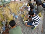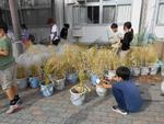 5年生が育ててきたバケツ稲が実り、収穫に入りました。