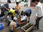 環境委員会では、学校を明るく彩るために、花の苗を植えていました。