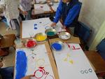1年生の図工で、スタンプ遊びをしていました。