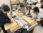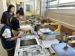 4年生の図工では、初めて彫刻刀を使った木版画に取り組んでいます。