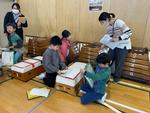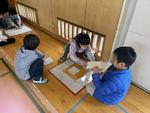 体育館で、いろいろなスペースや道具の広さを、折り紙をもとに調べて比べることができました。