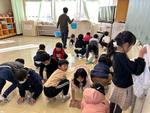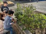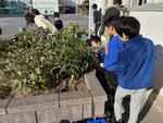 この冬一番と言われた寒さの今朝、子ども達が正門近くの花壇に集まっていました。