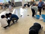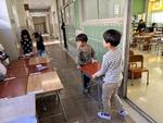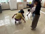 机やいすを廊下に出して、スポンジなどで教室や特別教室の床やドアのレールなどピカピカにしていました。