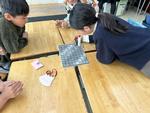 授業では、インドのすごろく「ラダー&スネーク(はしごとへび)」を紹介してくれました。