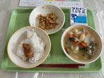 ごはん、梅干し、焼きのり、すいとん、ぶどう豆、牛乳
