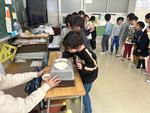 今週始まった「豆つまみ大会」ですが、開催方法がクラスごとに変わり、場所も各教室になりました。