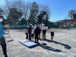 安全によいフォームで跳ぶためのポイントが得点化されていて、チームで順に跳んで、ポイントをクリアしたらその得点をプラスしていくのだそうです。チーム対抗で行っていました。