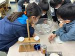 5年生が理科の「水溶液の性質」の学習で、実験をしています。