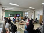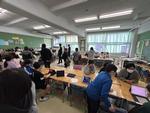567組は思い出や成長を発表 1年生・2年生の発表は教室に入れないくらいの人でした。