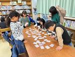 3年生が総合的な学習で作ったまちのカルタを2年生に紹介して、一緒に楽しんでいました。