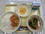 今日の給食は「桃の節句」にちなみ、菜の花ずし、すまし汁、牛乳 でした。