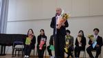 代表児童の言葉と花束の後に、離退任職員からお話をしました。