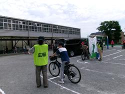 1年生は歩き方、4年生は自転車の乗り方について確認し、校庭でシミュレーションします。ブレーキ実験や死角実験なども見せていただきました。