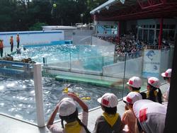 「イルカショーでイルカのジャンプがすごかった。」「外でグループのみんなと食べる弁当がおいしかった。」「はじめて見る生きものもいた。」「みんなでバスに乗って遠足行けて楽しかった。」