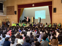 見守り隊の方が27人来てくださり、全校で「見守り隊さんありがとうの会」をしました。メッセージカードのプレゼントをしたり、歌のプレゼントをしたり、安全宣言をしたりしました。