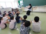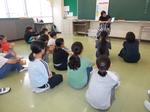 教室では、児童が真剣にお話しを聞き、食い入るように本を見ていました。