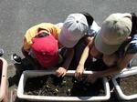 プランターに植えた花の種から芽が出ました。花によって違うふたばの形に興味をもちながら、間引きを行いました。これから、ぐんぐん育っていくのが楽しみです。