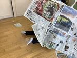 図工の学習で新聞紙を使った造形遊びをしました。