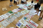 米袋を日本地図に並べてみると、自分たちが食べているお米は新潟県や山形県などのお米が多いことに気が付きました。