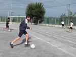 区の球技交流会に向けて、サッカーの学習が始まりました。