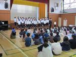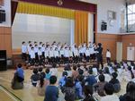 区の音楽会に向けて練習してきた4年生が、朝会で歌声を発表しました。