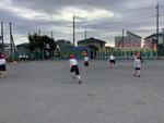 空気が冷たい中でも、元気に体育でティーベースボールをしています。