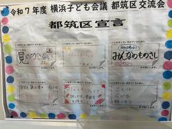 本校から代表児童1名が参加し、区内の児童・生徒と話し合いをしてきました。いじめ根絶のため、「相手の立場に立つ」という事や「みんなのものさし」というキーワードが出てきたそうです。参加した児童・生徒によって採択された、「都筑区宣言」は本校昇降口に掲示しております。