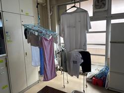 放課後に、ふと家庭科室をのぞくと、洗濯物が干してありました。