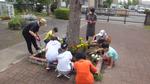 6月26日(金) 梅雨の晴れ間に地域の方からいただいたたくさんの花の苗を前庭に植えました。子ども達は技術員さんに花の植え方を教わり、保護者の方の協力をいただき、植えることができました。来校される際には、前庭の植物たちをご覧になってください。